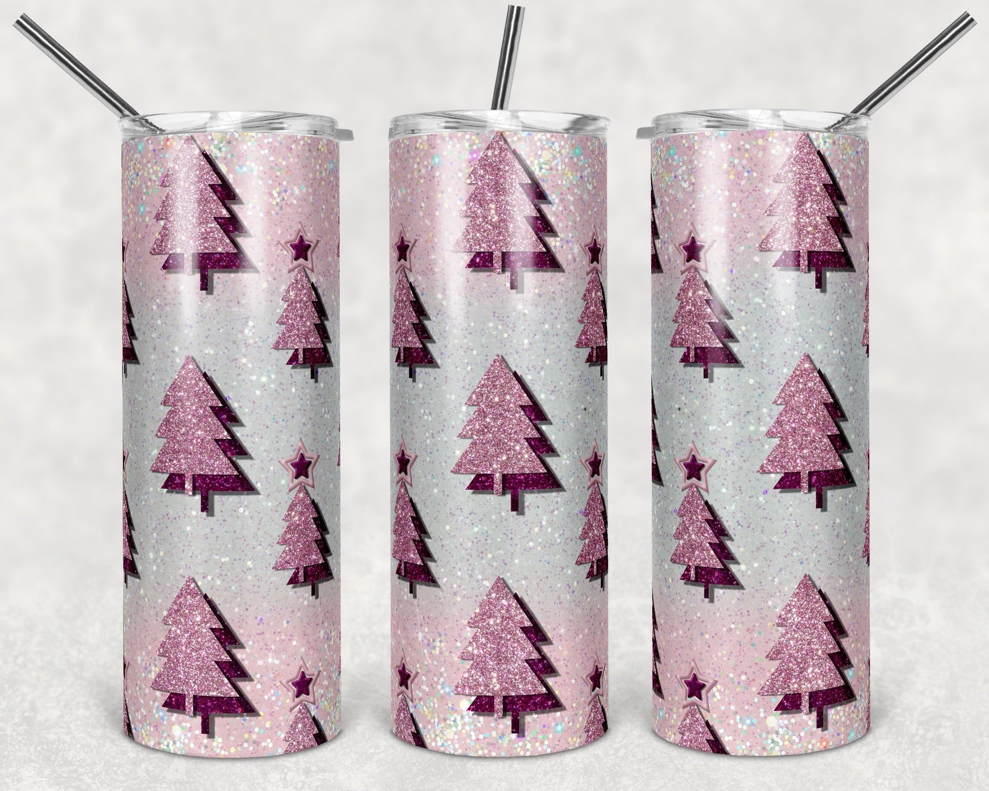 Sparkly Pink Christmas Tree - 20oz or 30oz Skinny Tumblers w/ Lid and Metal Straw