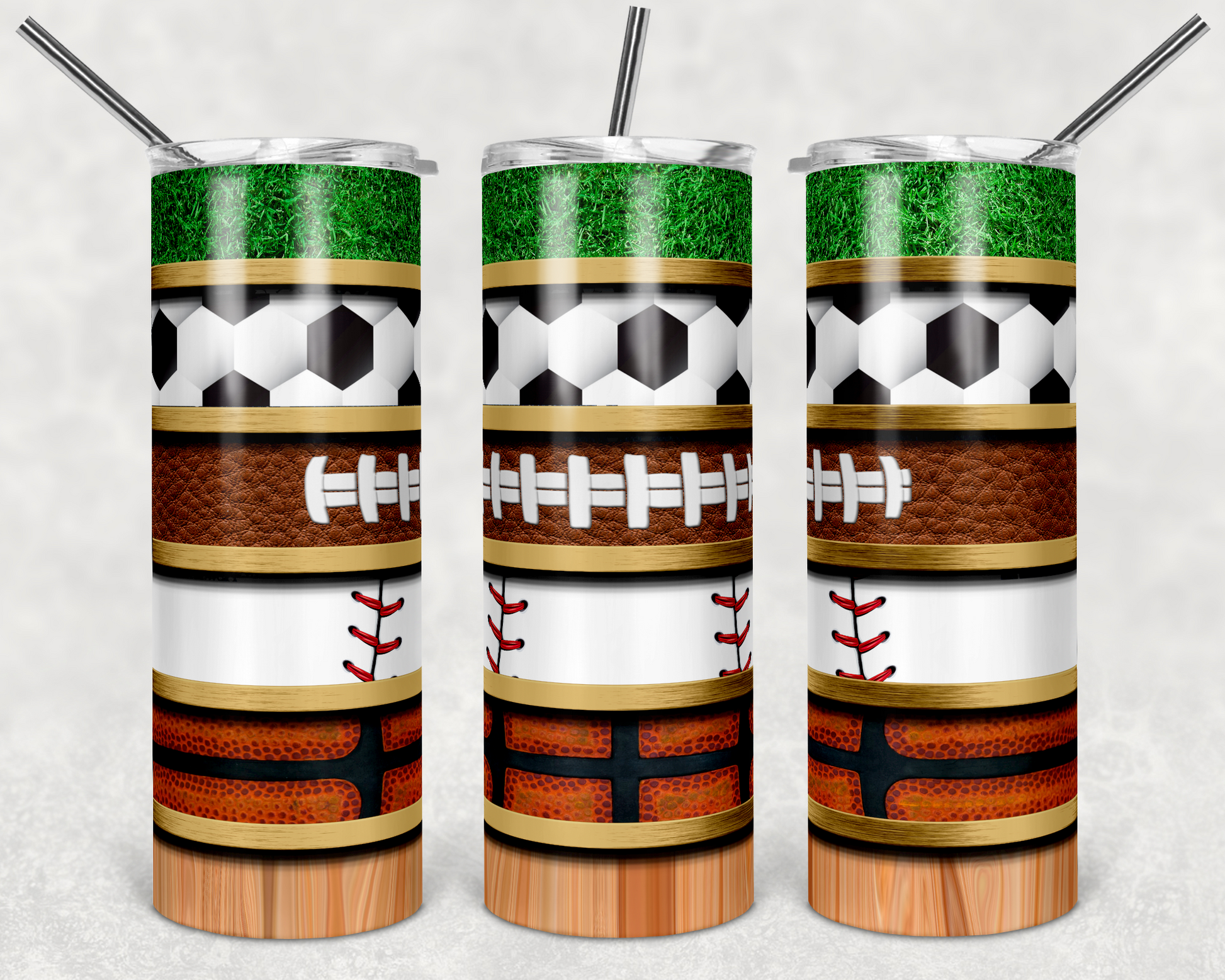 Baseball, Football Basketball and Soccer Sports - 20 oz or 30oz Skinny Tumblers w/ Lid and Metal Straw