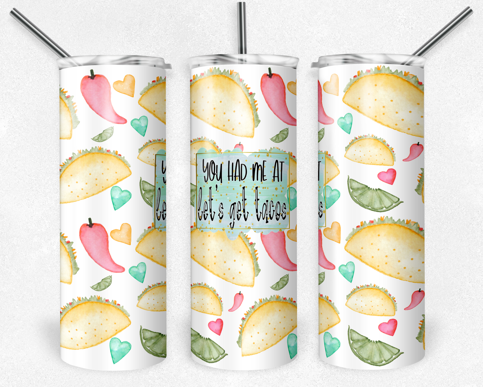 You Had me at Tacos- 20oz or 30oz Skinny Tumblers w/ Lid and Metal Straw