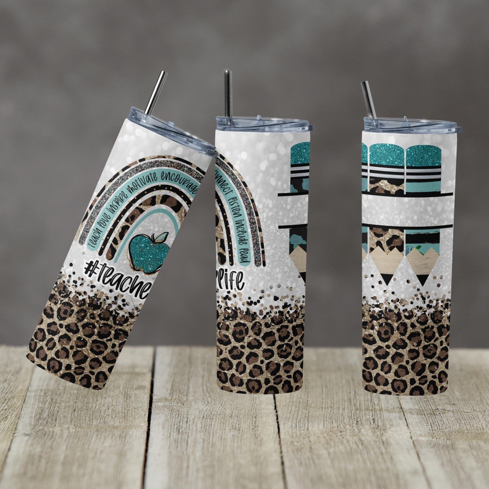 Teacher Life - 20 oz or 30oz Skinny Tumblers w/ Lid and Metal Straw