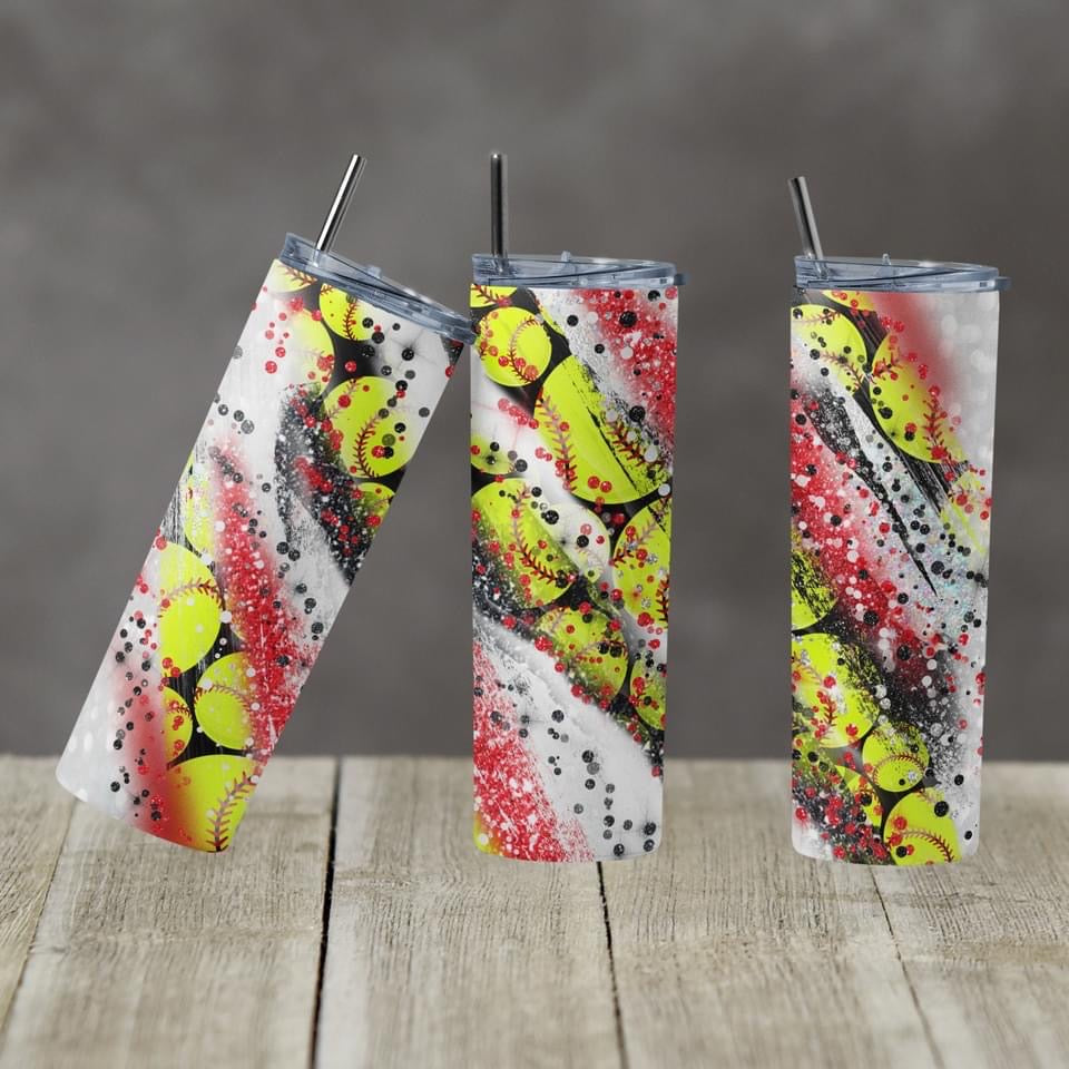 Softball - 20 oz or 30oz Skinny Tumblers w/ Lid and Metal Straw