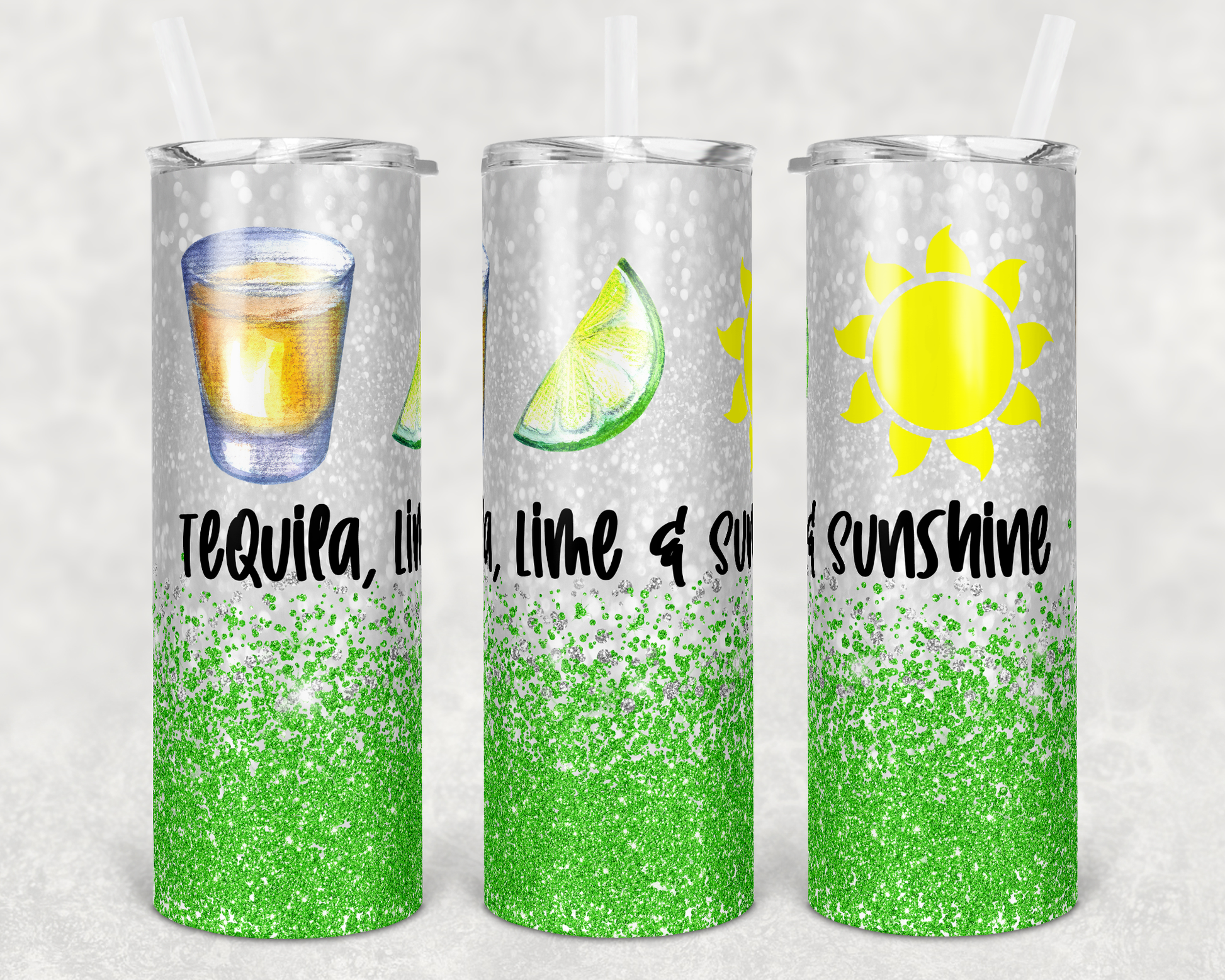 Tequila Lime & Sunshine- 20 oz or 30oz Skinny Tumblers w/ Lid and Metal Straw