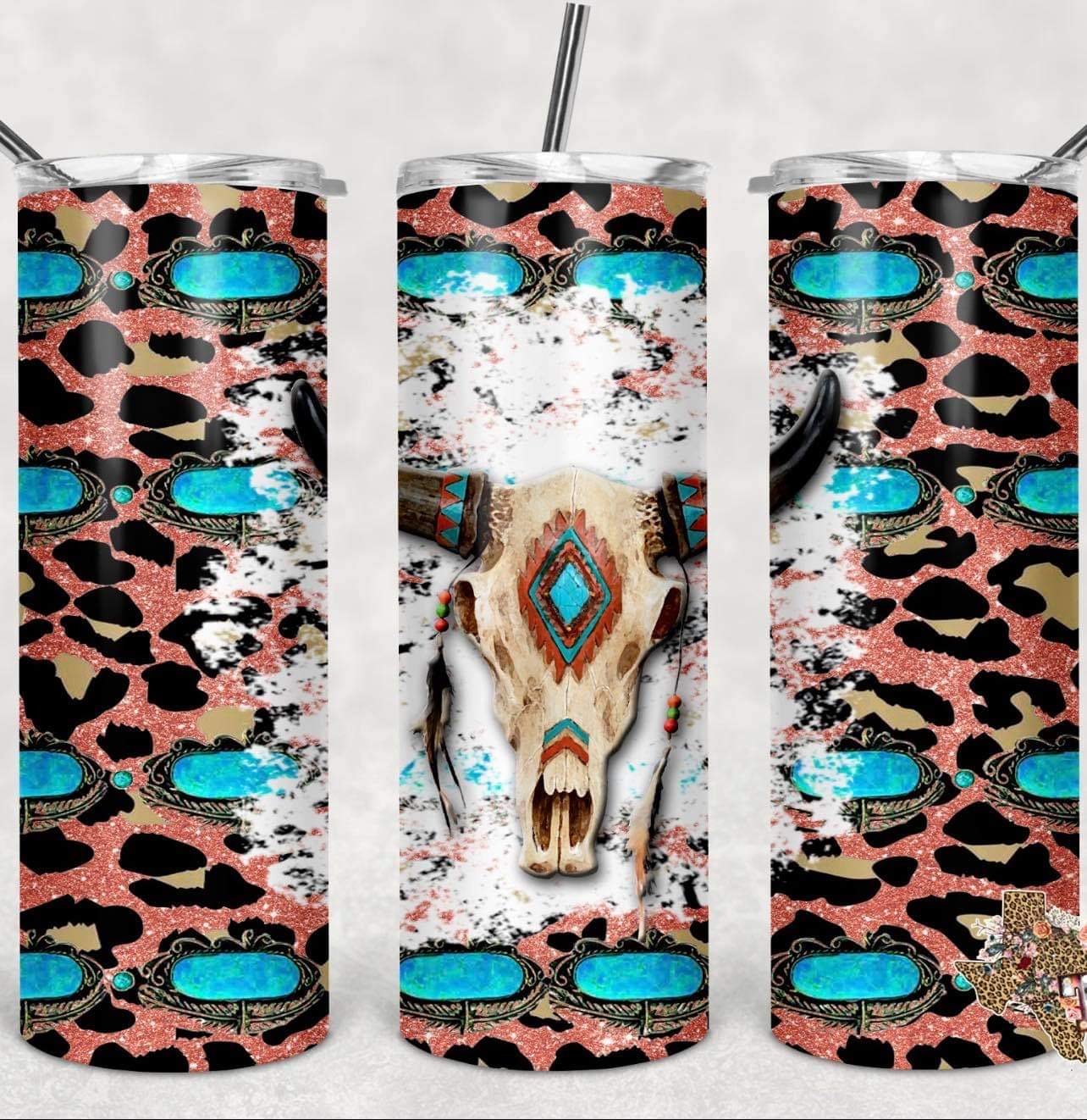 Western Cow - 20 oz or 30oz Skinny Tumblers w/ Lid and Metal Straw