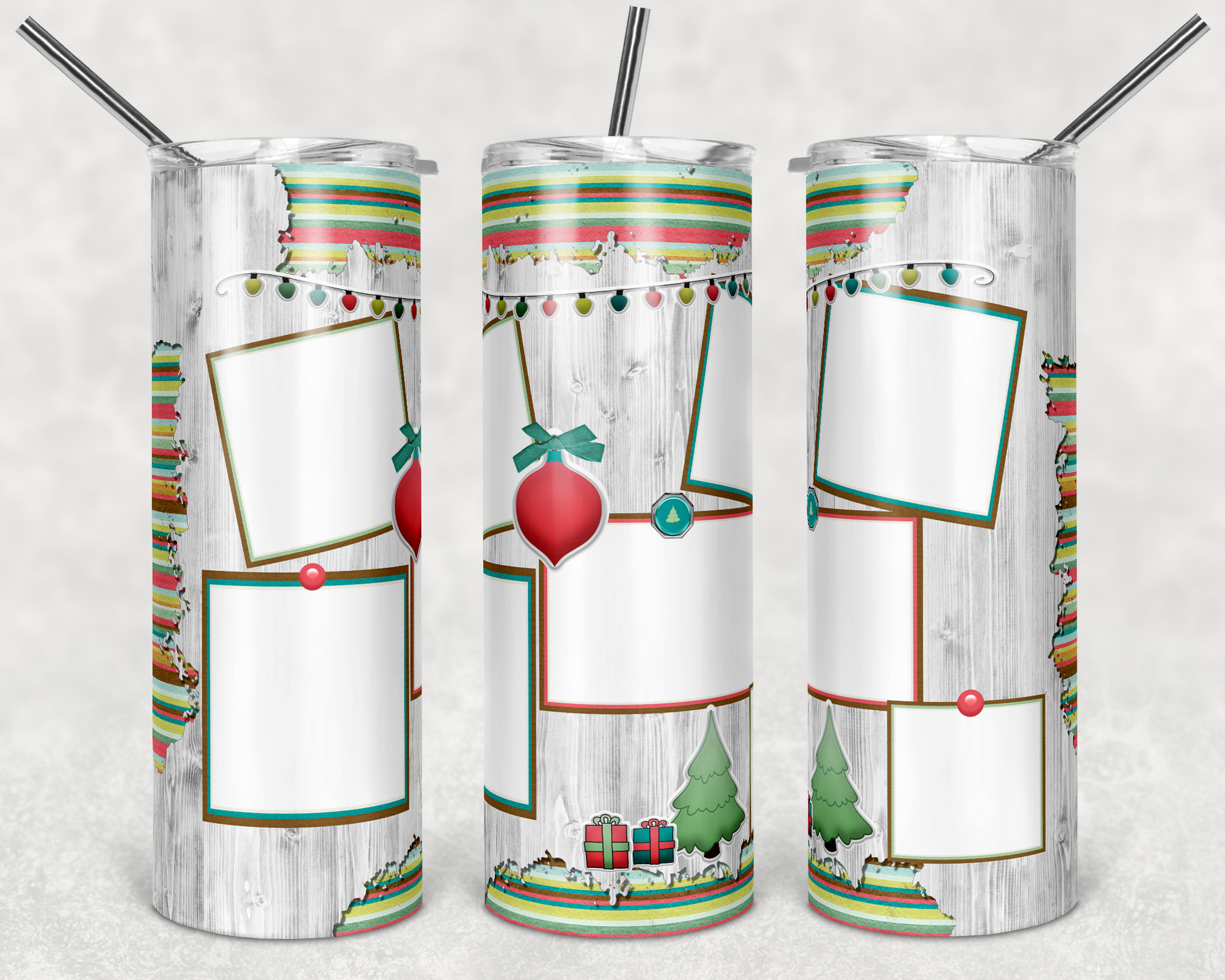 White Wood Picture Frames- 20 oz or 30oz Skinny Tumblers w/ Lid and Metal Straw