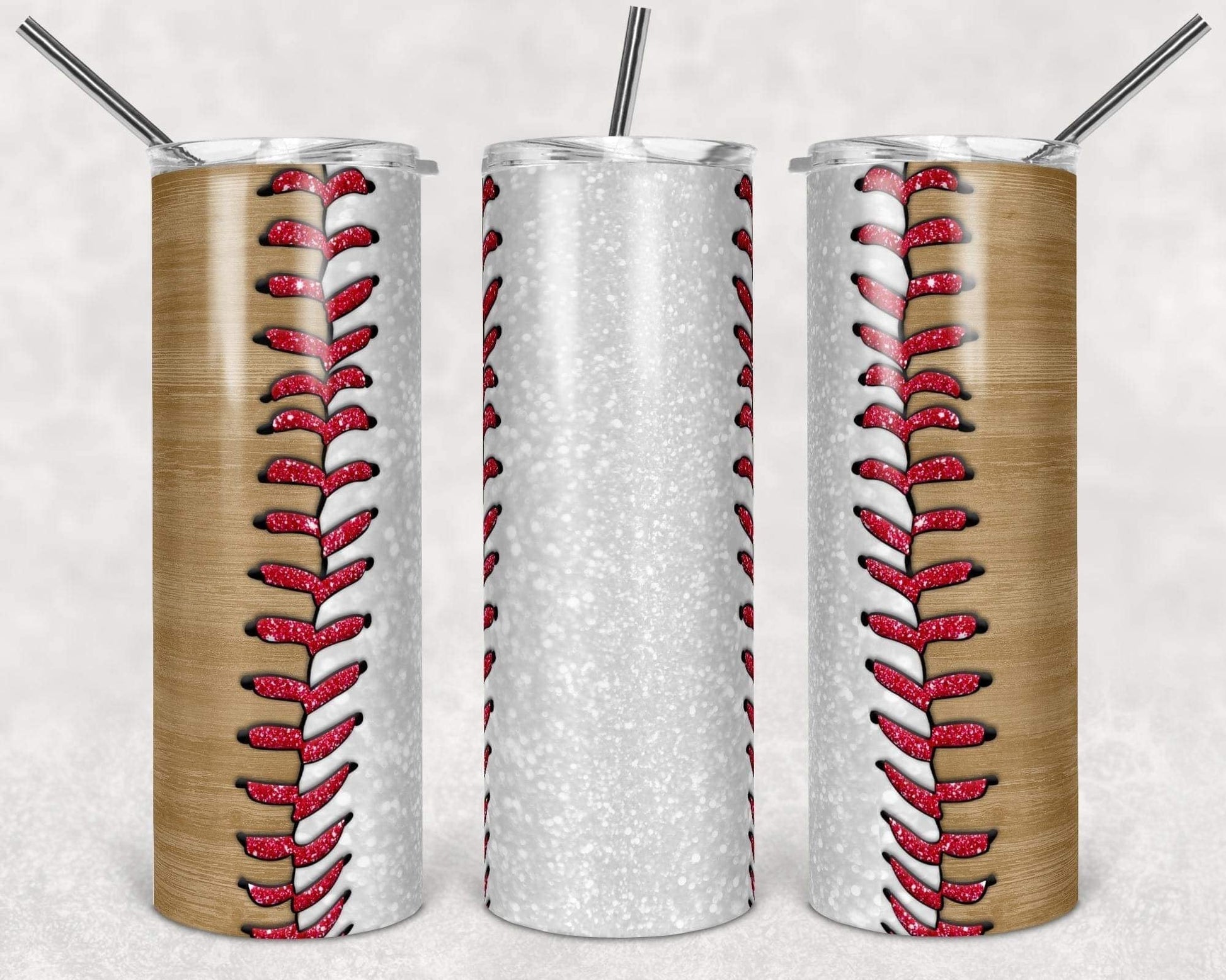 Wooden Baseball Stitch- 20oz or 30oz Skinny Tumblers w/ Lid and Metal Straw